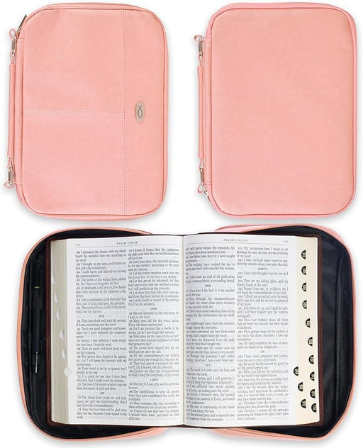 Two-fold Pink Faux Leather Organizer Bible Cover - Large