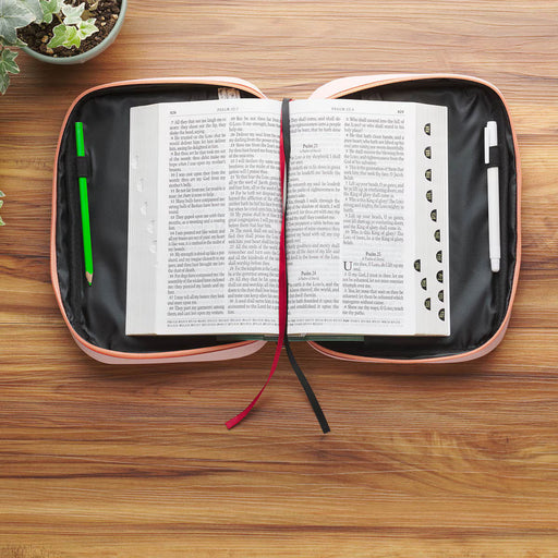 Christian Art GiftsEncourage a woman of faith to stay grounded in God's Word and organized in her quiet time with the Two-fold Pink Faux Leather Organizer Bible Cover...