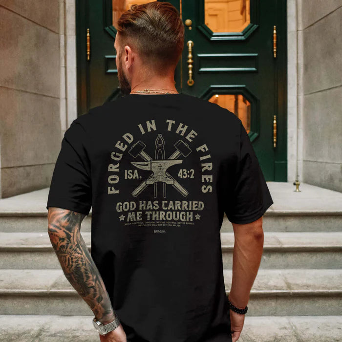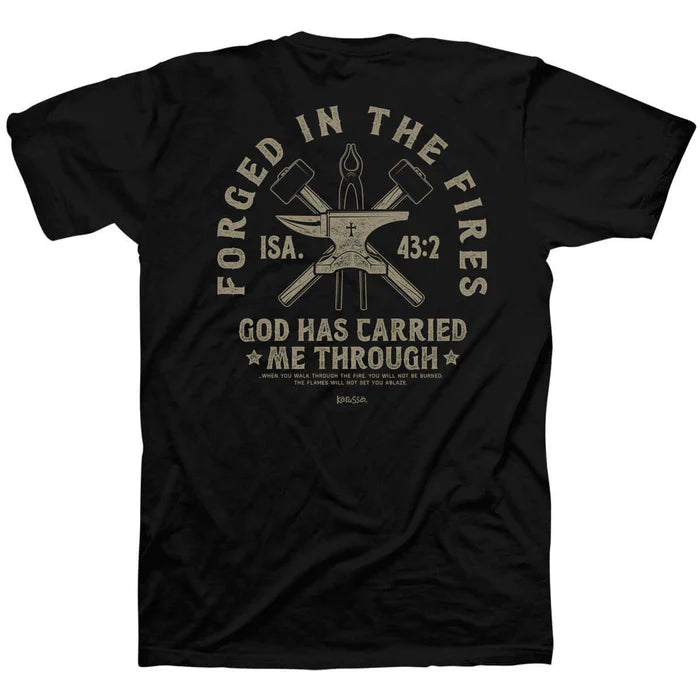 Proclaim the steadfast strength of your faith in this “Forged In Fires” Kerusso® T-Shirt in Black. Whatever trials we face in this life, when we believe in Jesus, we know God will carry us through. Faith is more than a slogan—it is an impactful, powerful way to live our lives.