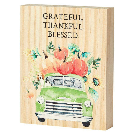 Faithworks by Creative BrandsReads: Grateful, Thankful. Blessed. • Solid Wood • Natural Edges • Features art from Heatherlee Chan • Material: Wood • Size: 5" W x 6.5" H x 1.5" D