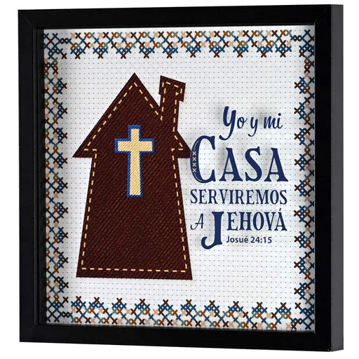 DicksonsShadow Box Style Spanish Framed Wall Decor Features A Cross-Stitch Style House Design With Josue 24:15: Yo Y Mi Casa Serviremos A Jehova. Parts Of ...