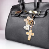 Cross Charm Key Ring – White