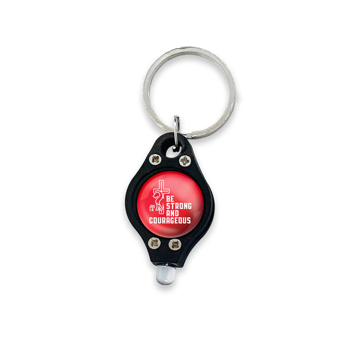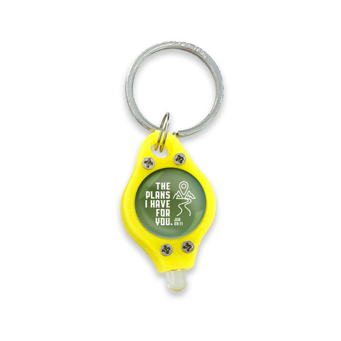Light up the darkness with these Mini Keyring LED Scripture Flashlights. Just push the center to turn on or flip the switch for hands-free light. Attach to any bag or purse for quick access.