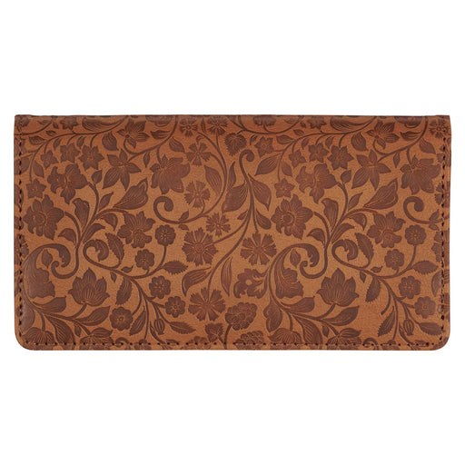 Christian Art GiftsChristian Art Gifts Premium Vegan Leather & Canvas Checkbook Cover for Women: Amazing Grace Inspirational Accessory, Brown & Tan Floral