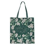 Strength and Dignity Green Floral Reusable Non-woven Shopping Tote Bag - Proverbs 31:25