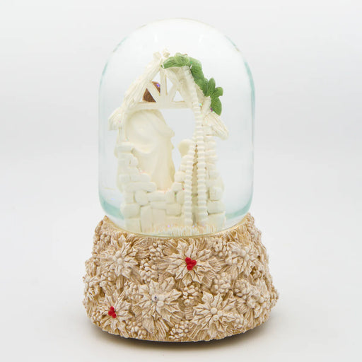 Glitterdome Holy Family with Poinsettia Accents- "Silent Night" Tune