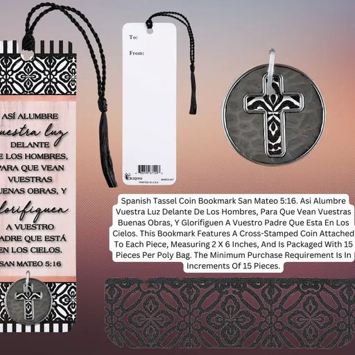 DicksonsSpanish Tassel Coin Bookmark San Mateo 5:16. Asi Alumbre Vuestra Luz Delante De Los Hombres, Para Que Vean Vuestras Buenas Obras, Y Glorifiguen A V...