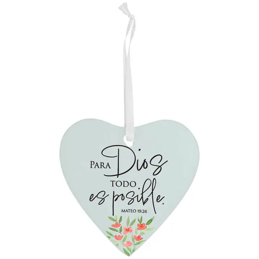 DicksonsA Floral Accent Accompanies This Spanish Mateo 19:26: Para Dios Todo Es Posible. Glass Heart Ornament Is Softly Frosted In White On The Back Side. ...