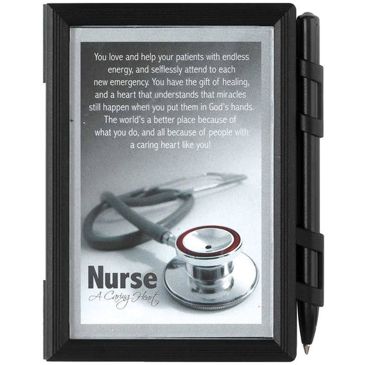 Dicksons80 Page pad with pen- 3 inches by 4-1/4 inches Height. Window: 2-3/8 inches x 3-5/8 inches Height with Nurse-themed art print.