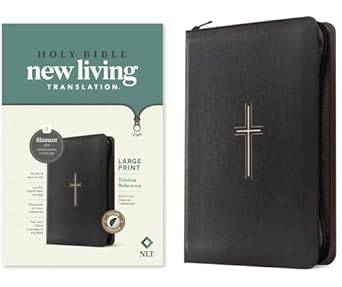 NLT Large Print Thinline Reference Zipper Bible, Filament Enabled LeatherLike, Indexed, Black Cross, Red Letter