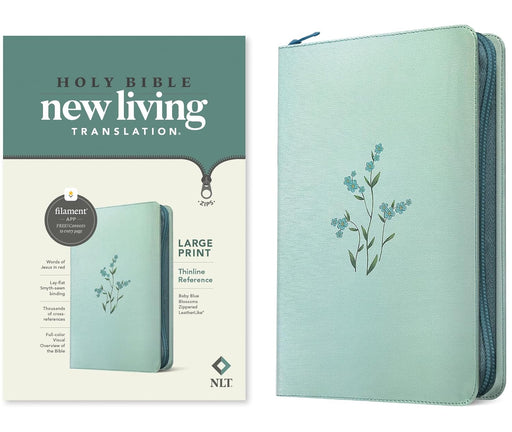 NLT Large Print Thinline Reference Zipper Bible, Filament Enabled (LeatherLike, Baby Blue Blossoms, Red Letter)