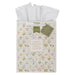 The side panels repeat the pattern in a muted taupe-colored design. White satin ribbon handles match the included two sheets of white tissue paper. This is also where you will find the gift tag: a sage green square with a tone-on-tone floral design and a white scripted sentiment.