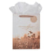The back of the bag continues the serene wildflower design. The taupe side panels have a printed leather look that gives the piece a rich, upscale feel. Taupe satin ribbon handles match the look. The bag includes two sheets of neutral white tissue paper to make wrapping effortless and elegant. A round taupe gift tag is attached to a satin ribbon handle. It is decorated with a dark brown UV-varnished crown of thorns design. There is space on the back to add a message.