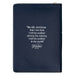A navy blue faux leather panel begins on the back cover and wraps around the spine to meet a printed front panel adorned with pale peach roses. Delicate golden leaves are nestled among the blooms, while gold-foiled floral outlines add a touch of elegance to the design. A stitched navy faux leather accent at the center displays the comforting sentiment in crisp white lettering.