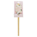 The silicone head's soft pink background is overlaid with sunny yellow, peach, and green floral details, and a warm coral script highlights the joyful sentiment.