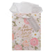 Soft blush roses, blush peonies, and white daisies bloom across both the front and back of this medium gift bag while green foliage creates depth and definition. In the center of the floral design, an elegant gold-foiled script shares the heartwarming sentiment.