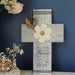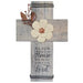 This rustic, farmhouse style Christian wall cross reminds you of what is important in life, with a Bible verse quote that reads, "As for me and my house we will serve the Lord - Joshua 24:15" and floral detail. Zippered hook hanger. 11” H x 7” W.