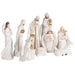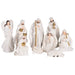 This Exquisite Nine-Piece Nativity Set Features Intricately Detailed Whitewashed Figurines That Evoke The Appearance Of Carved Wood, Showcasing Remarkable Elegance. Enhanced With A Vintage Accent, These Figures Introduce A Rustic Charm That Beautifully Complements Your Holiday Decor. The Tallest Figure, Joseph With Staff, Stands At 7 Inches, While The Shortest, Baby Jesus, Measures 1.75 Inches. The Angel And The Wisemen Each Stand At 6.75 Inches, With Another Figure Reaching 7 Inches, And The Kneeling King At 4.75 Inches. Mary Measures 4.5 Inches, And The Lamb Is 3 Inches Tall. This Set Is Expertly Crafted From Resin.