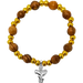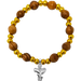 This unique Olive Wood Stretch Bracelet, Gold Beads and Cross/Dove Dangle will make the perfect accent to any outfit. Handcrafted out of genuine olive wood from the Holy Land of Bethlehem, this beautiful bracelet can be worn formally as well as casually. Each comes with an attached silver-plated charm that will help display your faith on your sleeve.