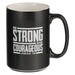 The simple yet impactful design of the Strong and Courageous Black Lion Ceramic Coffee Mug matches the urgency of its sentiment.