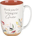 - Heartfelt Educators Mug: This sturdy white coffee mug features a clay bottom along with the "Thank You for Helping Me Grow" message on the front and back. The bottom is decorated in a ring of multicolor florals that coordinates beautifully with the glossy burnt orange interior.