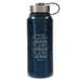 The water bottle's deep navy blue metallic finish gives it a sleek, modern look. It features the sentiment in a bold gold-foiled collegiate font that is contrasted with white capital letters.