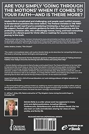 In The Pretend Christian, author Deirdre Reilly shares her personal journey toward discovering authentic Christian faith. Through common questions, doubts, and a mix of both negative and positive experiences, she unveils the transformative reality of Christ's presence. With raw honesty, sincere doubts, and often humorous insights, The Pretend Christian presents a candid exploration of modern faith and the search for the one true God.